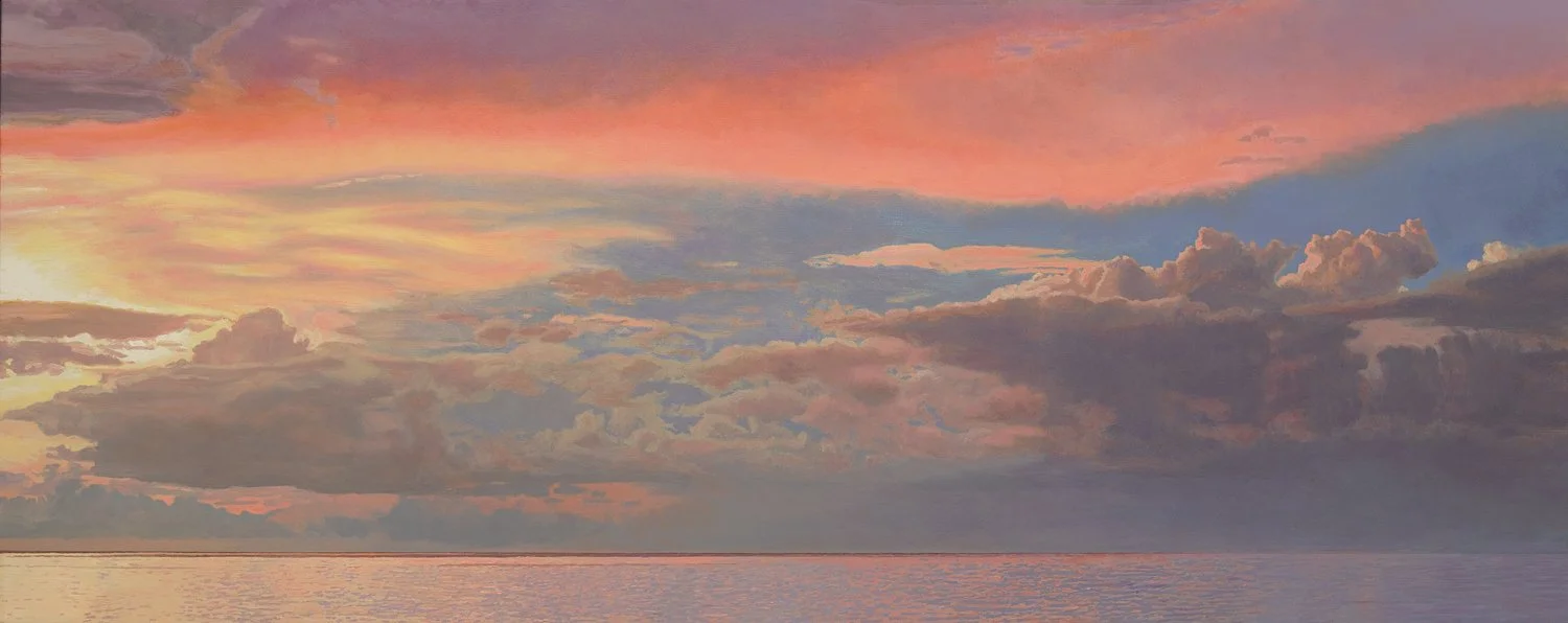 There are many beautiful effects in nature, but to work on canvas, they have to present a composition, an interesting way of organizing the light or color scheme. In that sense, it's clouds that make a sunset. They give it depth, dimension and color.